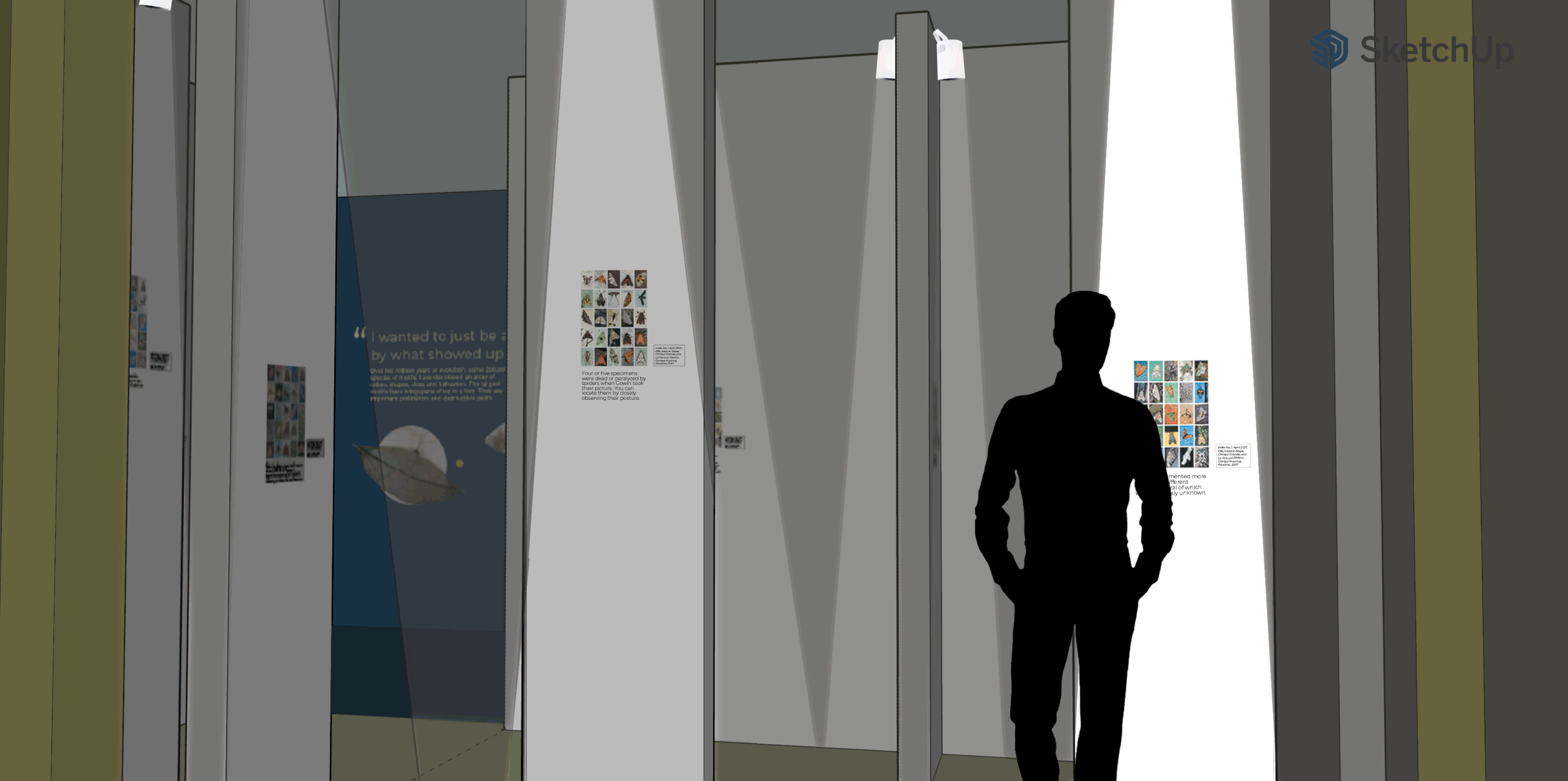 When I first prototyped the forest gallery experience I made each section too wide– I forgot just how small the moths are at the right scale. I couldn’t always see what people felt until I turned it from sketch to form.