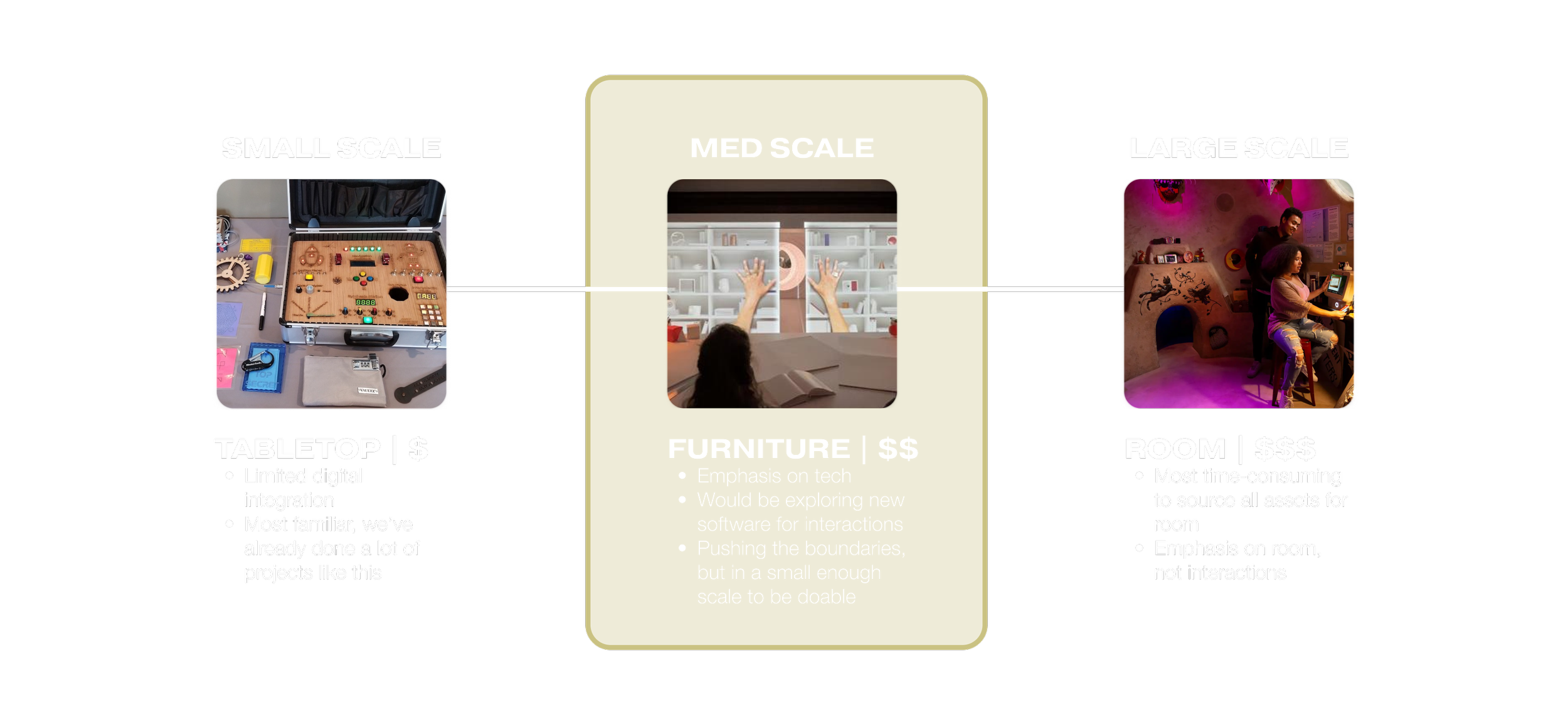 We wanted to create a primarily physical experience, with a digital overlay. We knew we didn’t have time and money to create something super large scale, so we had to be strategic with what we chose.
