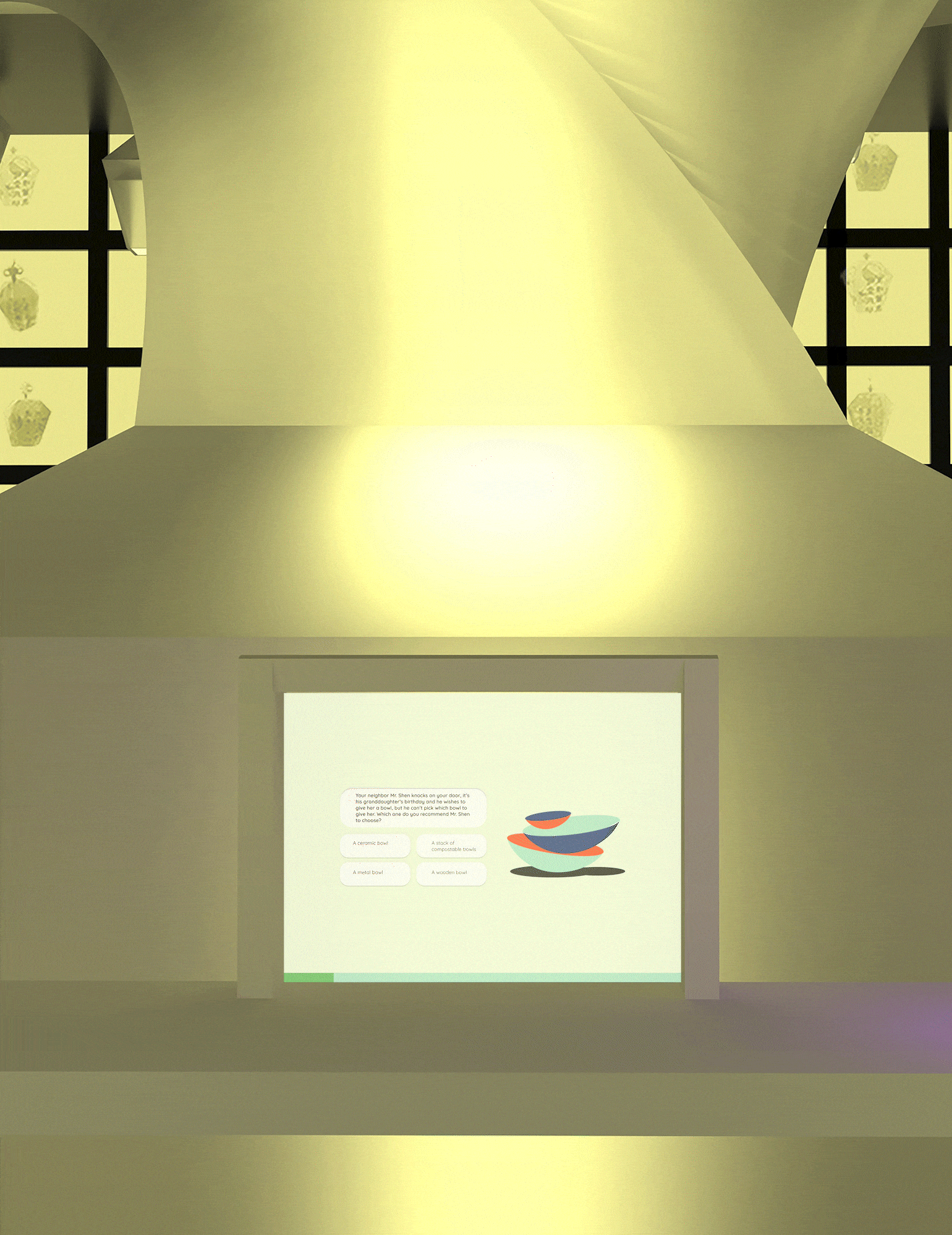 The world expo invites countries to build pavilions in the host city, capturing each country’s dedication to sustainability. Through this pavilion I tell the story of Taiwan’s dedication to the Earth beginning from is aboriginal past to the modern inventions today. I created assets beginning from the physical space, to the UI of the quiz interface in the space.